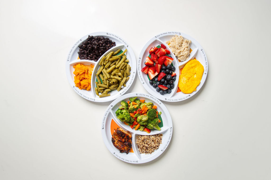 The Morsel Medicine Plate uses a proven 50/30/20 visual guide that shows you exactly how to build a balanced meal: