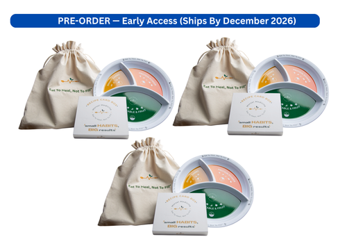 The Morsel Medicine™ Smart Portion Plate + Recipe Card Deck is a practical, research-informed nutrition tool designed to help individuals and families build balanced meals with confidence.